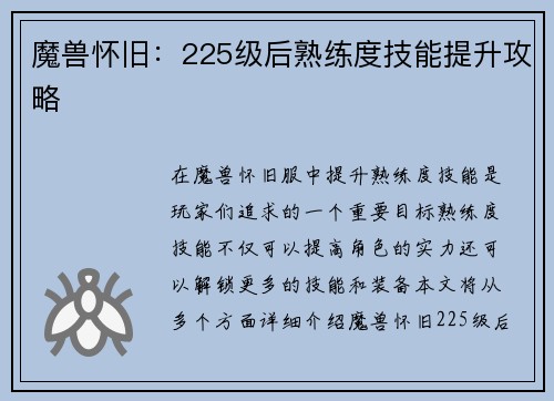 阅读魔兽世界怀旧服如何让装备不断移动 引言: 魔兽世界怀旧服的推出让许多老玩家重温了当年的经典,其中一个重要的因素就是装备的不断变动。在怀旧服中,装备的获取和升级变得更加困难,让玩家不断追求更高的装备水平...